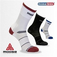 Cyklistické ponožky od Moose, jejichž nosným prvkem je plně anatomická konstrukce nášlapného plyšování spojená s odvětrávacími kanálky. Dominantní je také výrazná ochrana kotníků a achilovky. Vše je doplněno anatomicky tvarovanou odvětrávací síťkou